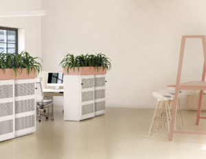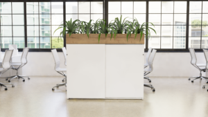 Voor een extra vleugje groen en verfrissing in uw kantoorruimte, kan Twinn25 ook worden afgewerkt met een metalen of houten plantenbak.