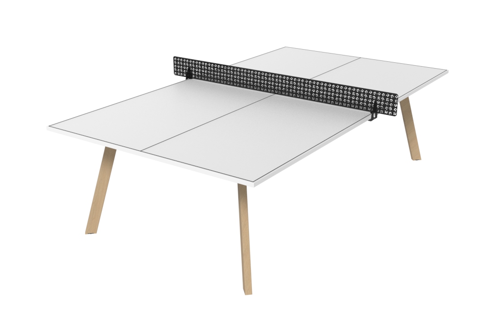 Onze pingpongtafel heeft officiële afmetingen voor een pingpongtafel. U heeft de optie om het metalen net naar uw eigen voorkeur aan te passen met eigen perforatiepatroon. Dankzij de bladklemmen kan dit net eenvoudig worden verwijderd, waardoor u de tafel gemakkelijk kunt transformeren tot een vergadertafel.
